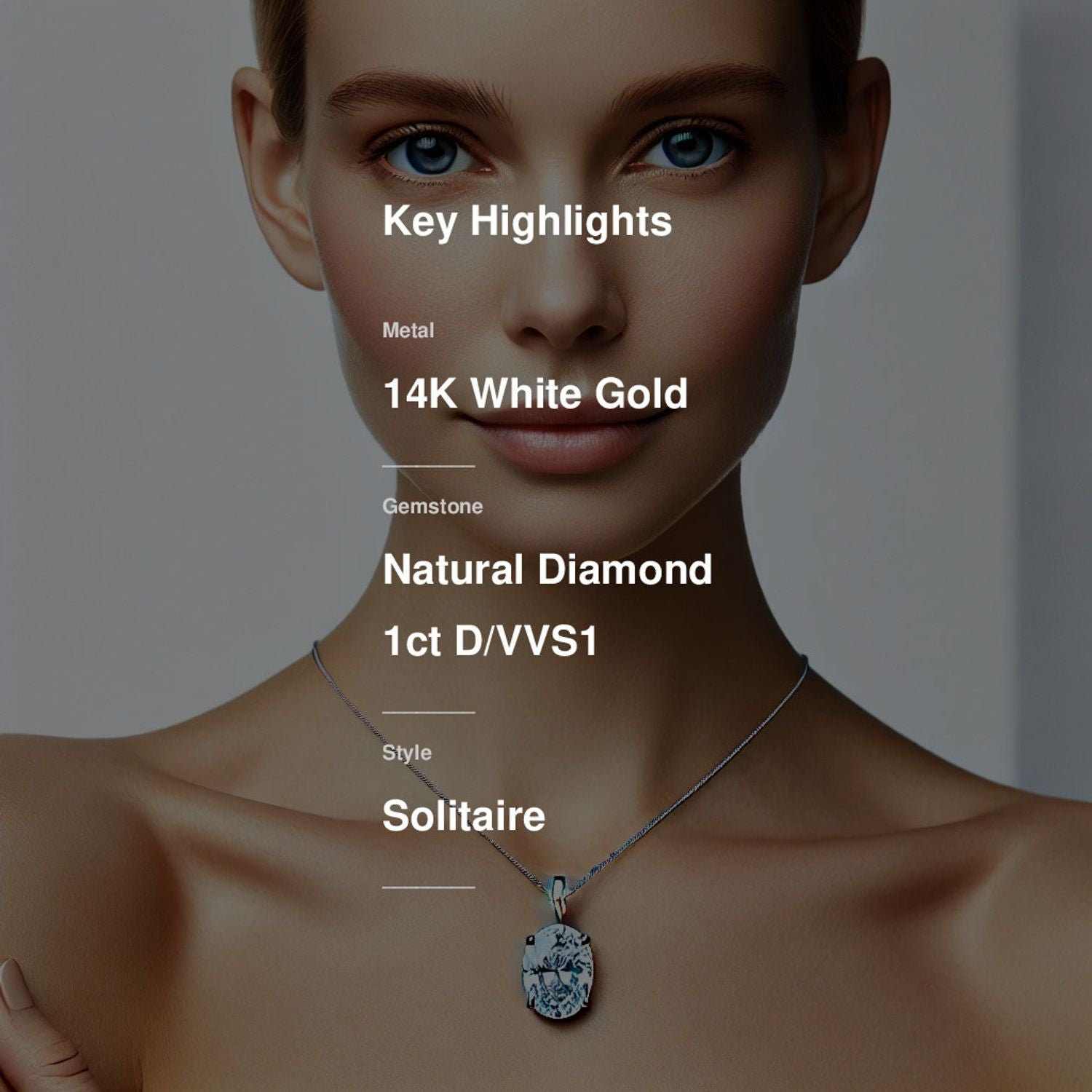 This stunning Necklace is crafted with the finest 14K White Gold, exuding elegance and sophistication. The design is truly unique, featuring a mesmerizing Oval shape that will captivate all eyes.