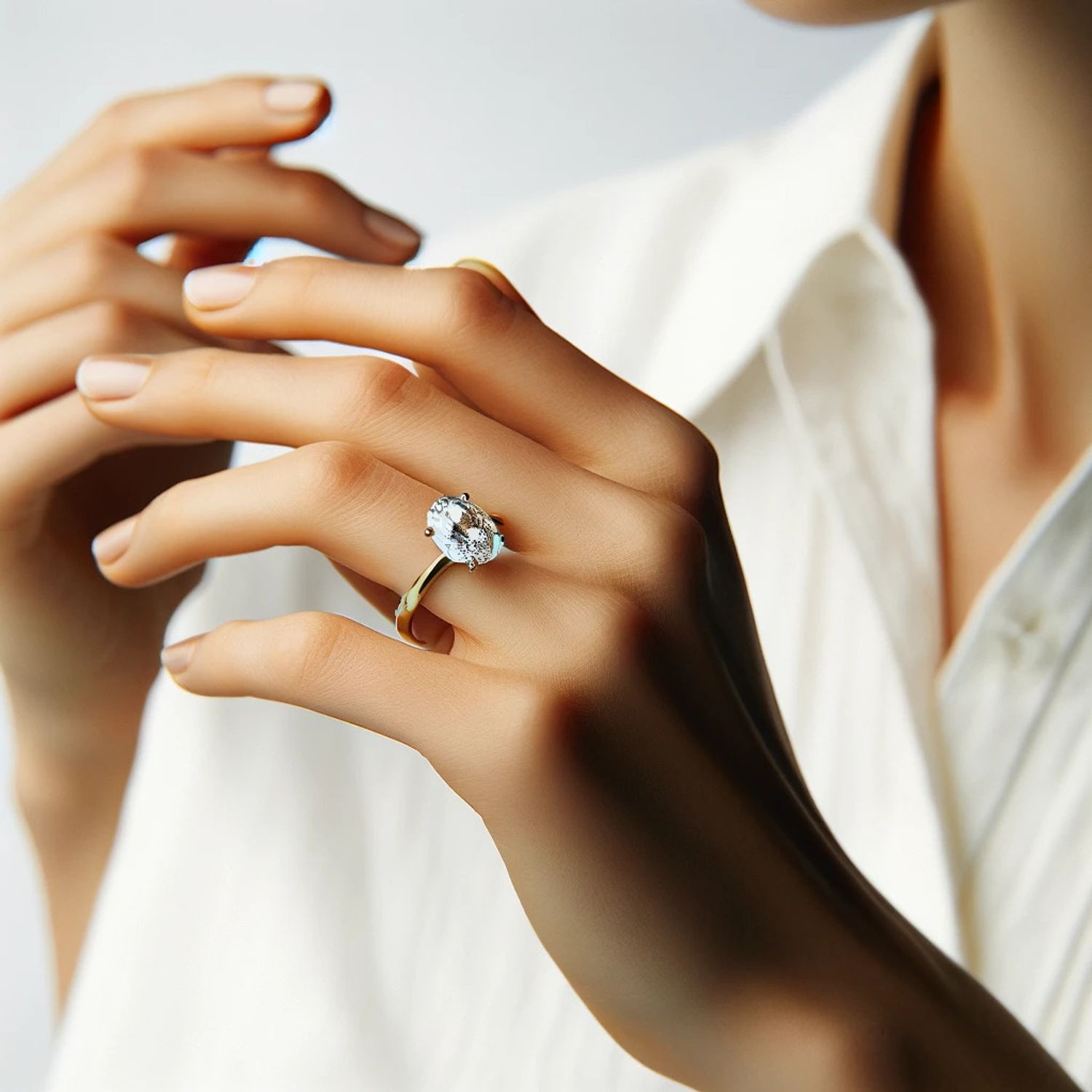 This stunning Ring is crafted with the finest 14K White Gold, exuding elegance and sophistication. The design is truly unique, featuring a mesmerizing Oval shape that will captivate all eyes.