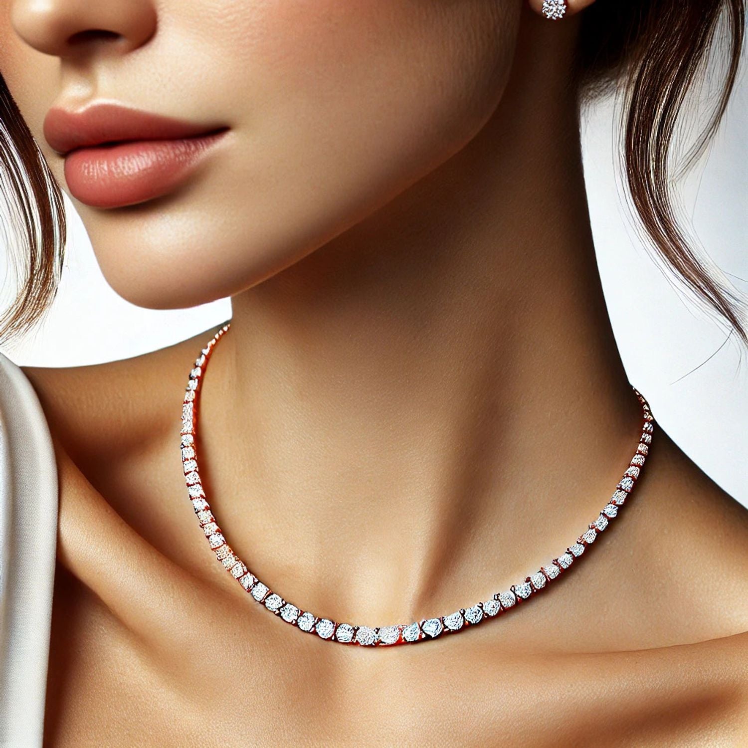 14K or 18K Gold Natural Diamond Tennis Necklace