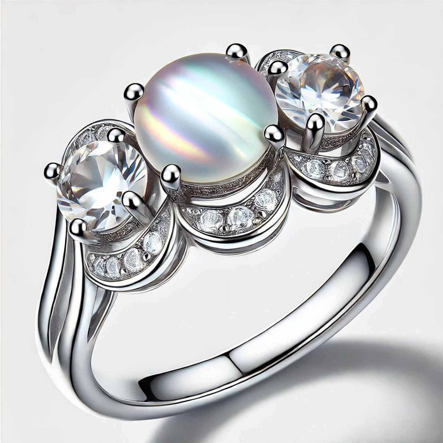 3-Stone Mother of Pearl or Moonstone Engagement Ring
