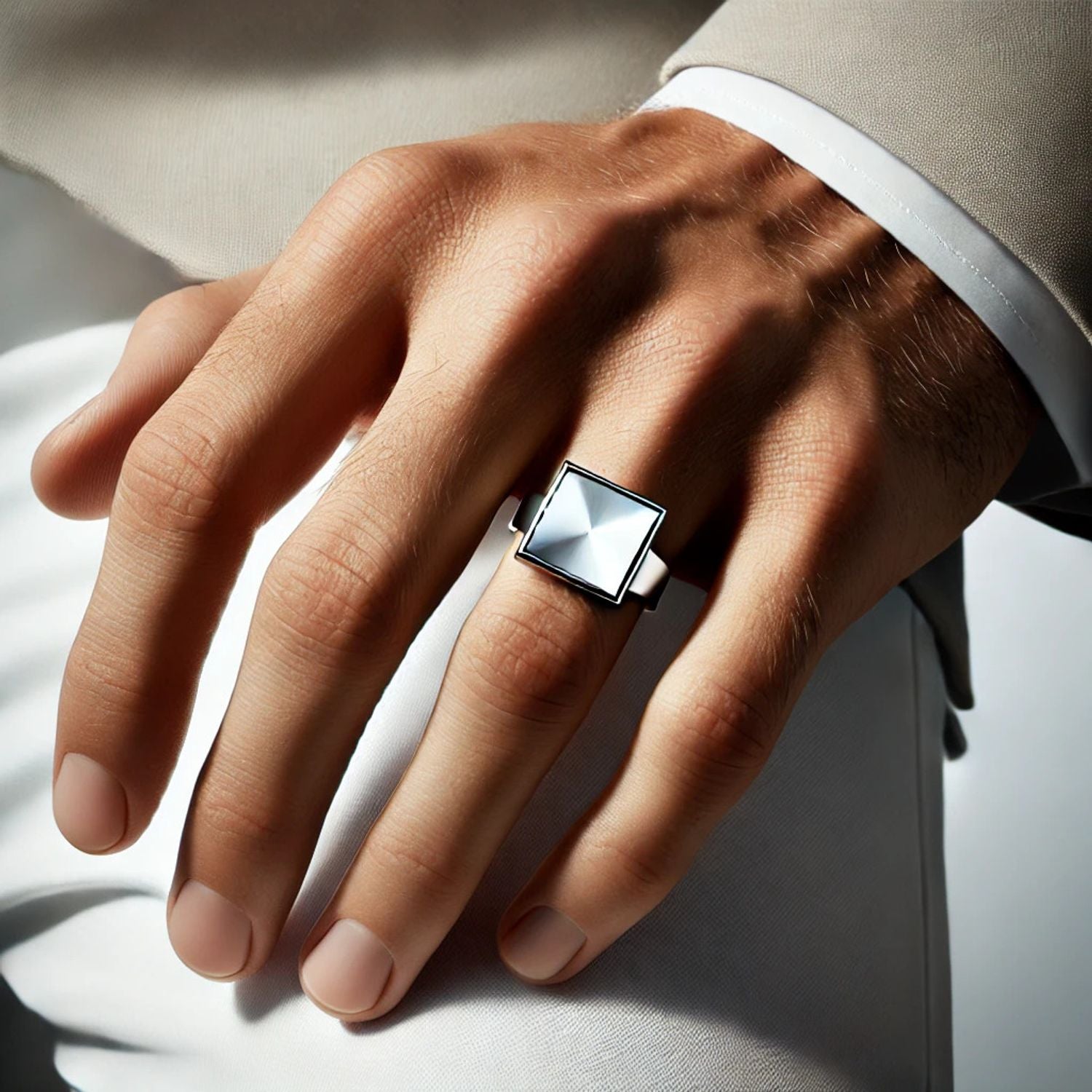 This stunning Ring is crafted with the finest 18K White Gold, exuding elegance and sophistication. The design is truly unique, featuring a mesmerizing shape that will captivate all eyes.